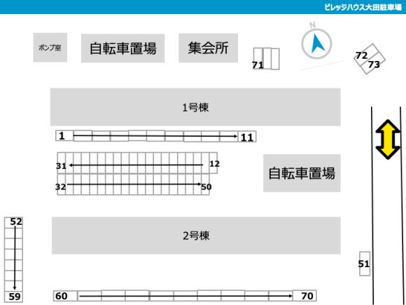 ※広い敷地のため、駐車前に駐車位置(指定区画番号)を確認してください。 ※指定区画以外には月極契約者がいますので、必ず指定区画を確認してお停めください。 ※周辺住宅のご迷惑にならないよう、アイドリングストップにご協力をお願いします。 ※団地内は徐行運転で安全に通行をお願いします。 |