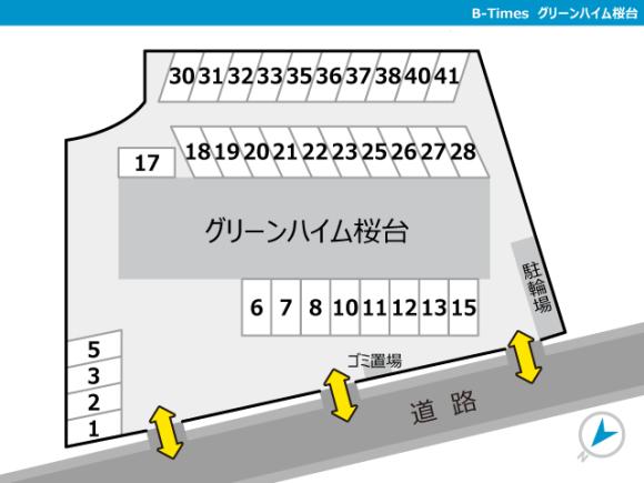 ※現地の区画線・番号等が見えづらい場合があります。掲載の配置図を参考に、お間違いのないように駐車してください。 ※アイドリングストップにご協力をお願いします。 |