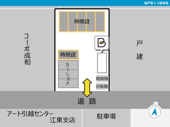 ■タイムズ亀戸第14(時間貸し駐車場)と同一敷地内です。 ■時間貸しの駐車スペースをご利用された場合、ご返金はできかねますのご注意ください。 ■ご利用いただく駐車場の住所で検索しても、ナビや地図アプリでは正しく表示されない場合がございます。 住所下にある「GoogleMAPで見る」のボタンを押して頂くと正しい場所が表示されます。 ■現地に到着した際は、必ずタイムズのBの写真や配置図をご確認の上、駐車してください。 間違って他の利用者の場所に駐車しないよう、お気を付けください。 ※現地には番号が振られていないケースもございます。 |