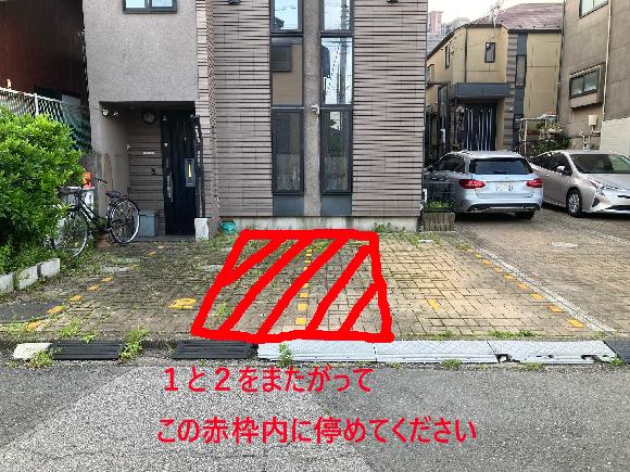 ※お隣の敷地に使って荷物の搬出等行っている方がいらっしゃるようです。 駐車場ナンバーは「1」と「2」がありますが、この区切りに関係なく、「1と2をまたがって駐車してください」 車の乗り降りの際に、お隣の敷地を利用することが無いように、余裕をもって 停めてください (郵便受けが飛び出していますので、ぶつけないようにご注意ください) ※予約日直前のキャンセルについては出来る限りお控えいただくようお願いいたします※ ■「車止め」はありませんので、家にぶつけない様にお願いします ■決してご近所に迷惑が掛からないようにお願いします ■ストリートビューは南側から来ると家の通りの向かいに木があったり、現状とかなり違っています |