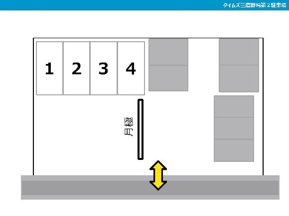 ■タイムズ三鷹野崎第2(時間貸駐車場)と同一敷地内です。 ■時間貸しの駐車スペースをご利用された場合、ご返金はできかねますのご注意ください。 ■現地に到着した際は、必ず写真や配置図をご確認の上、駐車してください。 間違って他の利用者の場所に駐車しないよう、お気を付けください。 |