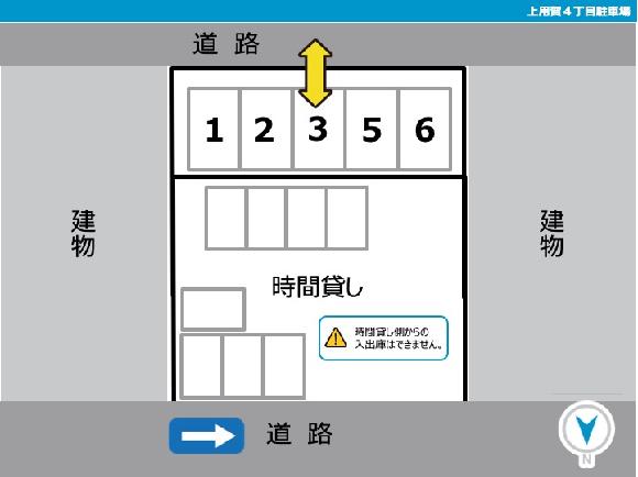 ※付近の駐車スペースには月極め契約者様がおりますので、必ず指定された場所の枠内に駐車してください。 ※時間貸しの入り口とは異なりますので、お気をつけください。 |