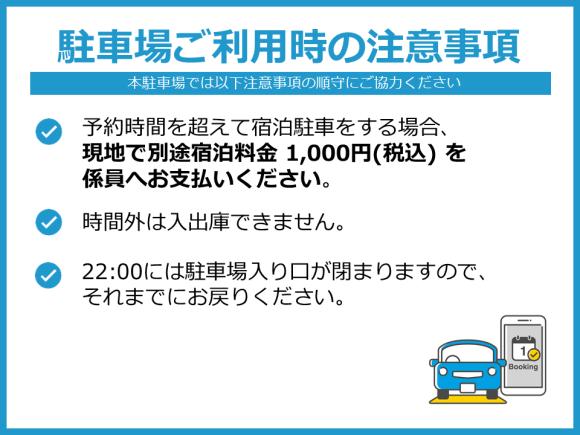 ※再入庫の回数に制限がある場合があります。駐車場の注意事項をご確認ください。