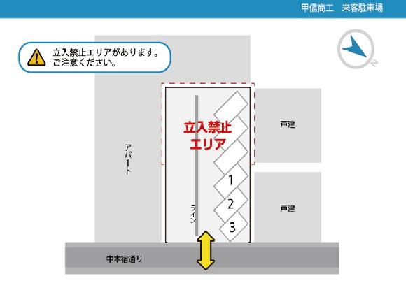 ■現地に車止めは設置されておりません。ご注意ください。 ■車室幅注意!隣接する車両に接触しないようご注意ください。 |