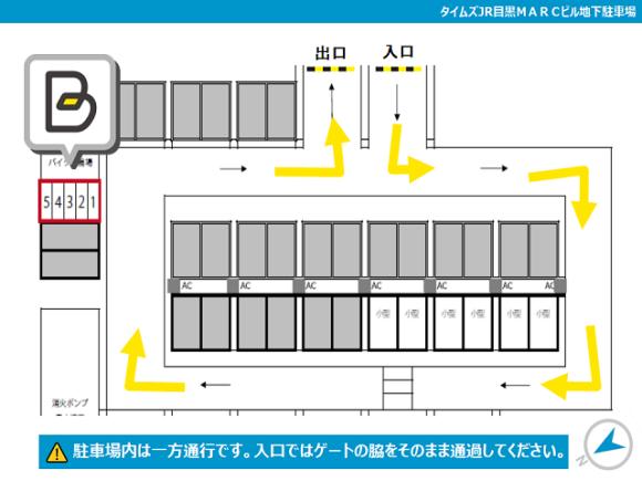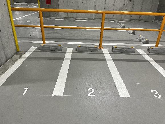 バイク車室は地下にあります。24時間入出庫可能です。 地下へのスロープを下りるとゲートがありますが、ゲートの脇をそのまま通り抜けてください。出庫の際もゲート脇をそのまま通過してください。 バイク車室は月極契約者様もご利用されておりますので、車室番号よくご確認の上、正しい車室に停めてください。 |