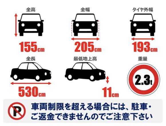【ご利用方法】 ※「タイムズで予約済み」であることを現地係員に伝え、「予約完了メール」を係員にご提示頂き、係員の誘導に従って駐車してください。 【車両制限について】 ※ハイルーフ車は、別画面からご予約をお願いします。 【提携店の割引について】 ※本サービスでのご予約の場合、提携ホテル等による割引は受けられません。 |