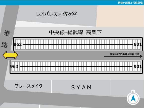 ※駐車場へ向かう道に大変狭い場所がございます。一方通行も多い ため事前にルートをご確認いただくと安心してご利用いただけます。 ※阿佐ヶ谷西3号駐車場の前面道路は北向きの一方通行となっているため、ご注意ください。 ※予約時に車室を選択できる駐車場です。 ※本駐車場は、以下の車両の駐車は禁止とさせて頂いております。ご了承くださいませ。 <駐車禁止車両>大型車及び8ナンバーの車両、バイク 【駐車場へのご案内】 ※月極駐車場内に駐車区画があります。 ※カーナビ等でピンポイントに指定されない場合は、「GoogleMapsで見る」のボタンから正しい位置をご確認ください。 【駐車の際にはご注意ください】 ※他の月極契約者様の駐車スペースに誤って駐車しないよう十分お気を付けください。 ※現地に記載の番号が見えづらい場合があります。駐車場情報のレイアウト写真を確認の上で指定の区画にお停めください。 ※アイドリング禁止、夜間のドア開閉などに配慮をお願いします。 当駐車場はB利用と月極契約とを並行して募集しているため、万が一双方のお申し込みがバッティングしてしまった際にはご利用いただけない可能性がございます。恐れ入りますが予めご了承のうえご予約をお願いいたします。 |