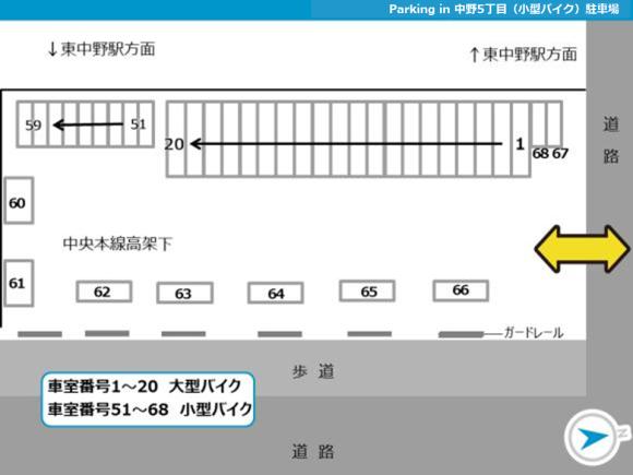 なかのZEROでのイベントやコンサートにぴったりのバイク駐車場です。中野駅へはまっすぐ歩いて徒歩8分ほど。
