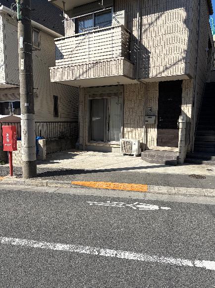玄関前に段差、後方にはゴミステーションがございますので、少し斜めに駐車していただくことになります。 駐車スペースは全長3.5m、幅2.1mのため、必ずお車のサイズをご確認の上ご予約をお願いいたします。 |
