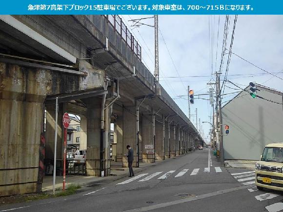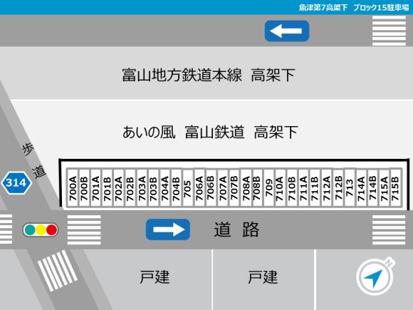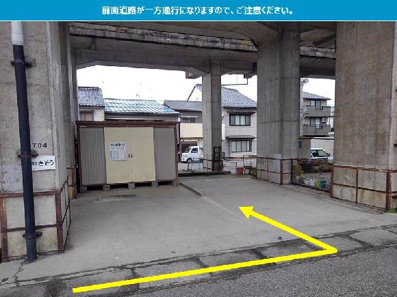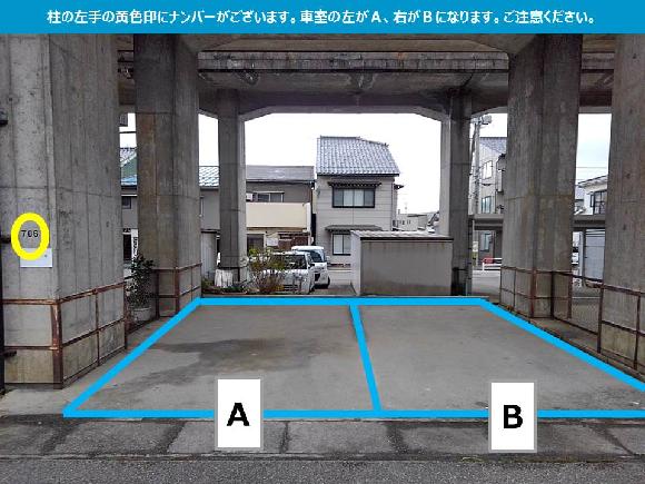 ■あいの風とやま鉄道高架下の駐車場です。レイアウト図と柱番号を目印にお越しください。 ■必ず、予約時に指定された車室番号にお停め下さい。 ■周辺は住宅地のため、アイドリングや騒音、夜間のドア開閉などに、ご配慮、ご協力をよろしくお願いいたします。 1.高架橋は雨から車両を守る屋根ではありません。雨が高架上より降込む場合や砂の混じった濁った水が車両に流れ落ちる事があります。ご承知のうえご利用ください。 2.駐車場内における盗難、破損、紛失、焼失、冠水、野生動物による糞尿被害など事故にかかる損害は、あいの風とやま鉄道(株)は一切の責を負いません。 |