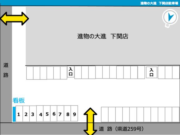 【駐車場へのご案内】 ●「進物の大進 下関店」の駐車場内です。 ●カーナビ等でピンポイントに指定されない場合は、「GoogleMapsで見る」のボタンから正しい位置をご確認ください。 【駐車の際にはご注意ください】 ●現地に記載の番号が見えづらい場合があります。駐車場情報のレイアウト写真を確認の上で指定の区画にお停めください。 ●周辺は住宅地ですので、アイドリング、夜間のドア開閉などに配慮をお願いします。 |