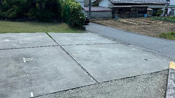 スペースの目安として白線(点線)を引いています。 極力真っ直ぐに駐車してください。 車止めはございませんのでご注意ください。 |
